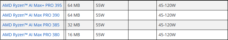 作为对比,AI MAX+ 395的官方TDP为45~120W,而在各个媒体的实测中,除少数桌面款的miniPC支持较长时间运行在120W的峰值状态外,多数轻薄本都无法满足120W的稳定运行。