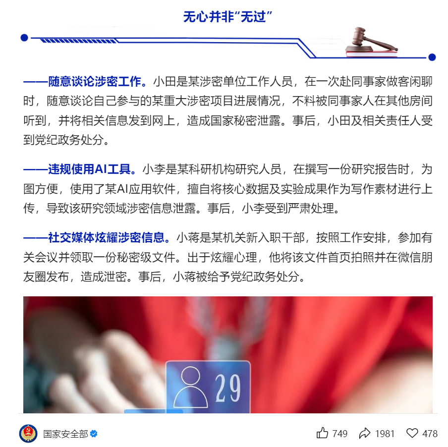 7月24日十大证券公司,国家安全部发布《萌新必看 职场“打怪”修炼手册》一文,文章中提及3起泄密案例。